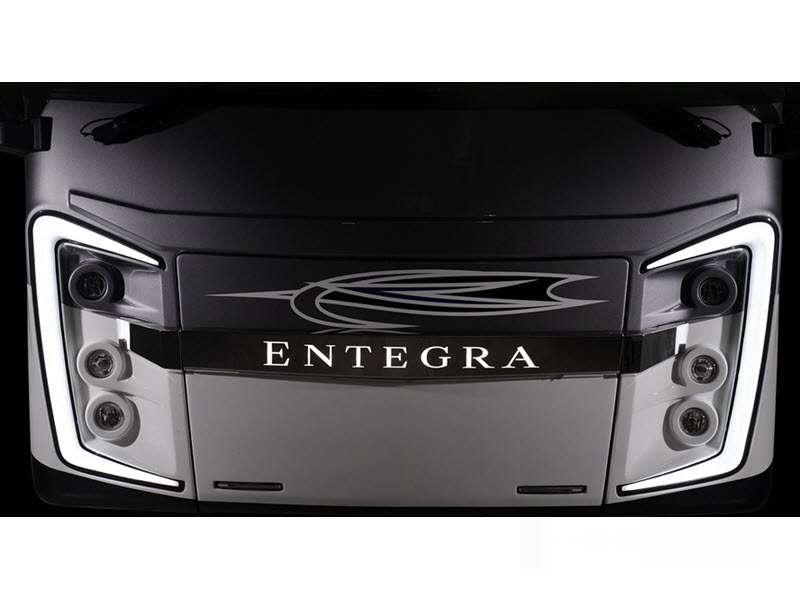 - Mudflap with chrome “Entegra Coach” nameplate