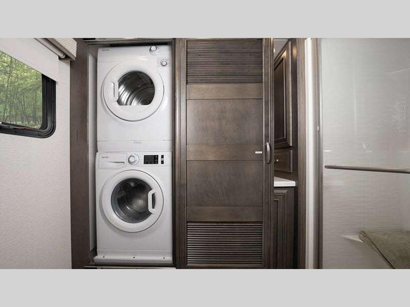 - 8KW diesel generator, 2KW inverter, 15K BTU air conditioner with (2) heat pumps, automatic leveling jacks, 360 camera, TPMS, Winegard Connect 2.0, power awning with LED lights, exterior entertainment center with LED TV, solar shades, GoPower 400W solar panel system