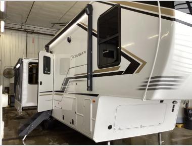 Spend more time having fun and less time worrying about your RV with the Keystone Cougar fifth wheel! These units have all that you will need for excellent vacations. The interior comes hardwood cabinet doors, solid surface kitchen countertops, an Oxygenics shower head and hose, plus a Vent-All window system. You will also appreciate the 12V charging stations throughout, the dual zone Bluetooth audio system, and the on-demand water heater for added comfort. The exterior is also fully outfitted with a convenience center, MaxTurn technology, Lippert axles with anti-lock braking system, and a Curt Road Armor shock absorbing equalizer for smooth towing. Each model is available with the optional Hero Edition. By choosing this edition, you can help support our nation's heros and their families by contributing to the Wounded Warrior Project. This optional package features an industry exclusive full-body paint matte finish, frameless windows, a glass entry door, blackout rims, and green LED exterior accent lighting; see dealer for more details!