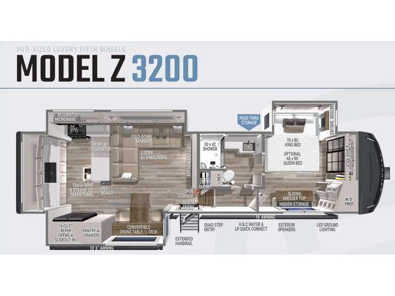 - Mid-Coach Pass-Through Storage Compartment w/ Motion Lighting & Power Outlets Storage Compartment (Heated & Insulated)