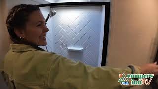 The Cougar Sport structural I-beam frame with stamped steel cross-members and outriggers, plus its laminated sidewalls with five-sided aluminum superstructure and Alpha Super Flex roof membrane are what active RVers love about the construction of the Cougar line. The Cougar Sport models are no exception when it comes to a great package, as well as being smaller and lighter weight than their big brother Cougar models. A one-piece, heated and enclosed polypropylene underbelly means a longer camping season. On the inside, residential shaker style hardwood cabinet doors and decorative crown molding, plus seamless pressed countertops and an on-demand water heater will make your unit feel even more like home. You are also sure to appreciate the shiplap style decorative accent wall behind the bed, a porcelain foot flush toilet in the bathroom, plus residential kitchen hardware, and so much more.