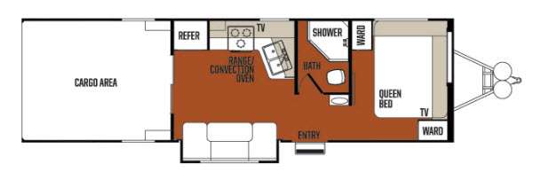 Toy hauler layout that supports hauling gear and everyday living