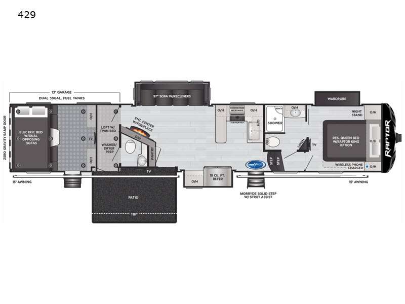 Whether you're hauling ATVs, motorcycles, or just living large at the campsite, the Raptor 429 delivers the power, space, and style to take your adventures to the next level. Visit Capital RV in Minot today to see this incredible toy hauler in person!